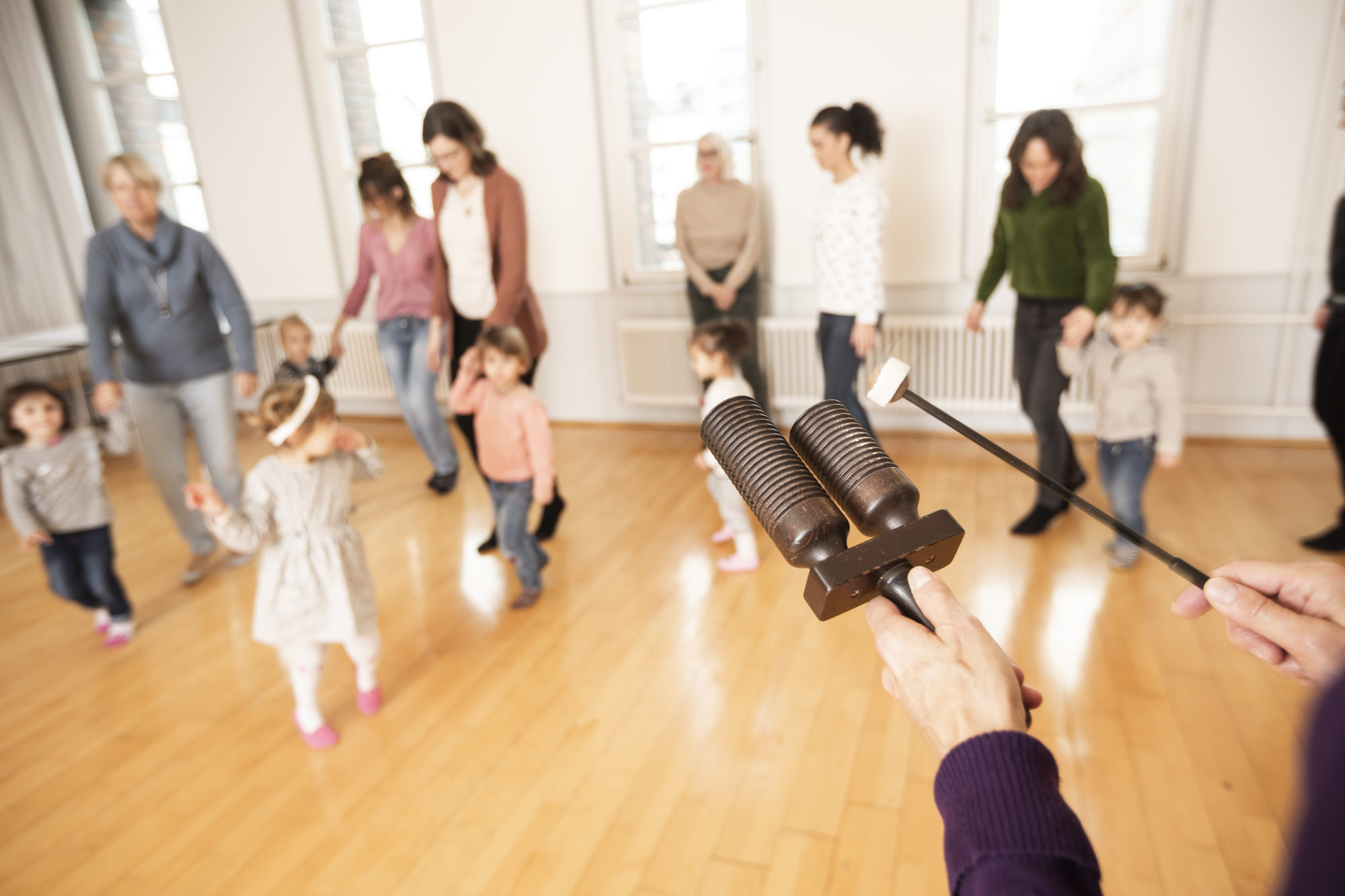 Über die Bewegung, Lieder und Verse und mit einfachen Instrumenten werden die Kinder in die Welt der Musik eingeführt.