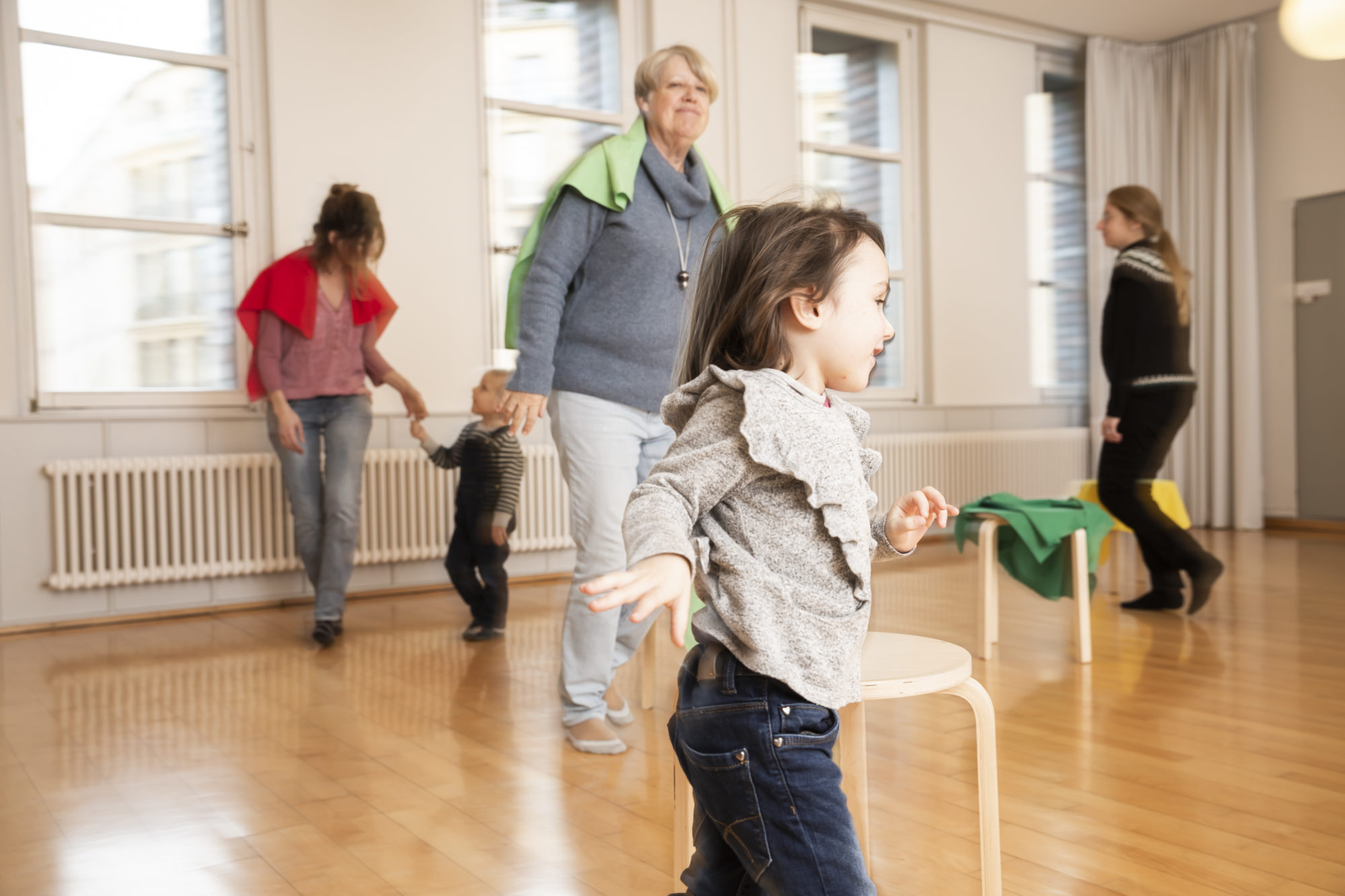 Vielfältige Arten der Fortbewegung und kleine Kreistänze erweitern die Bewegungsmöglichkeiten des Kindes und fördern das Gefühl für Rhythmus und musikalische Formen.